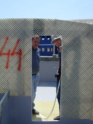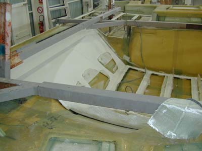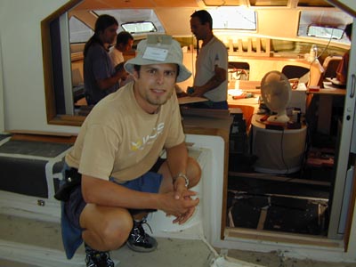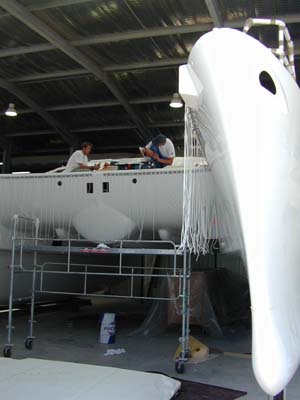 Flo and Christophe, Catana Construction Manager, inspecting WILDLIFE's deck house, which is about to be taken out of it's mold