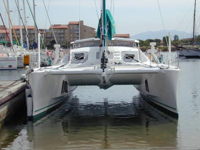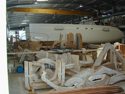 JF and Christophe with a bare bones WILDLIFE, HULL NUMBER 44 (that means she is the 44th 47-foot hull that Catana has built with their new design)
