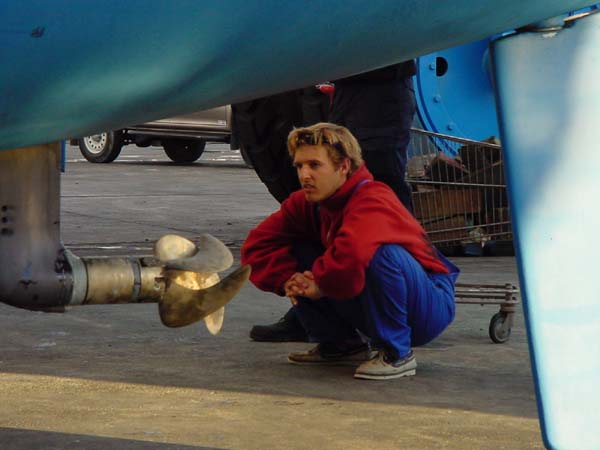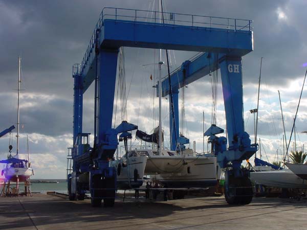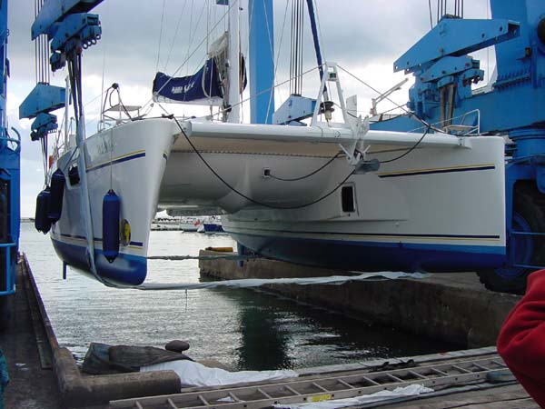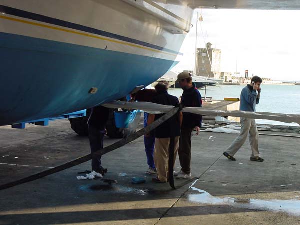 After squeezing Wildlife into a slip only 50 cm wider than her beam, she finally is out of the water.