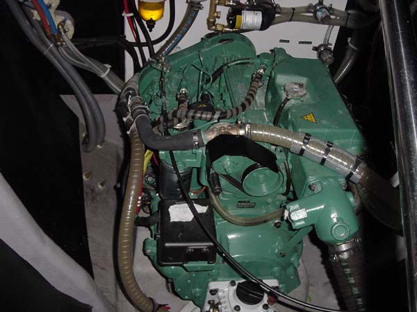 Oil change on WILDLIFE's 50 hp starboard Volvo Penta diesel engine.