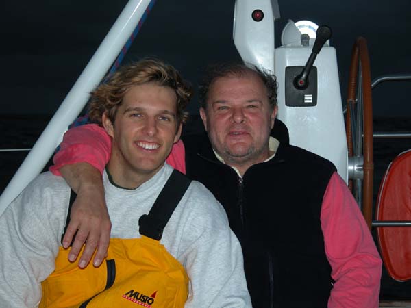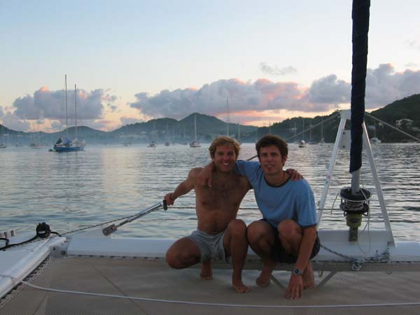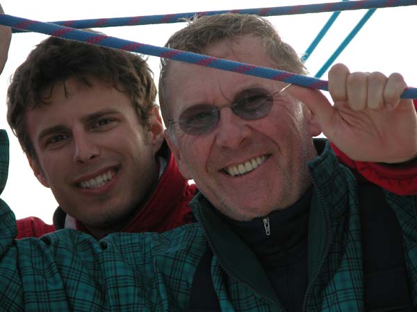 The 2 skippers, JF Thye and Florian Wilken, with St. Anne in the background.
