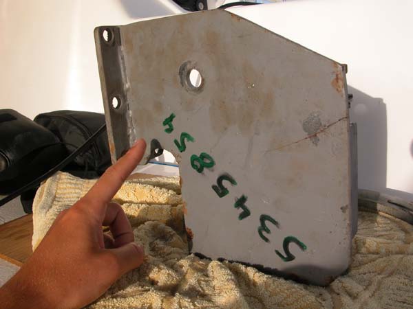 After dismantling the engine we also detect a fracture in steel alternator mounting plate. A local welder will reinforce the plate for us.