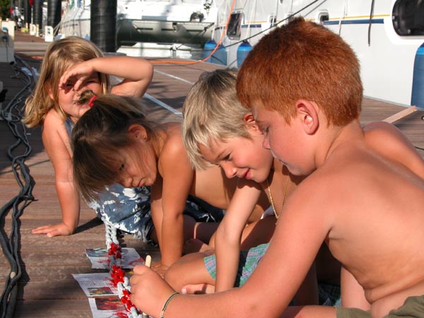 Children are curious and eager to help. We had to mark our 100 meter long anchor chain with red paint, and after showing them how to correctly put the paint on the chain, the children finished the work by themselves.