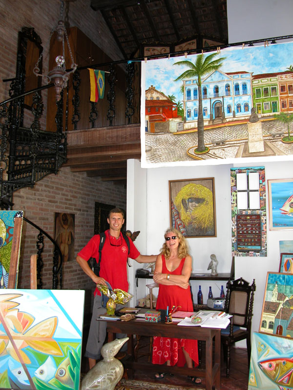 A local artist shows Florian one of the many 'artesanias', that can be found in Recife.