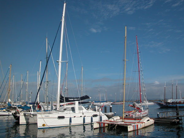 WILDLIFE safely docked at the 'Centro Nautico da Bahia'. On the other side of the dock to the right, 'Spirit of Canada', one of the Around Alone Open 40s, has just arrived.