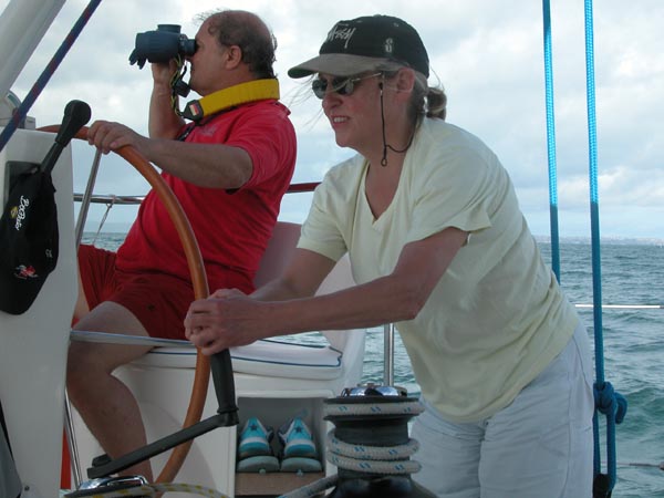 Florian's mother Ursula at the winch and his father Andreas at the helm sailing with Florian in Salvador's beautiful 'Baia de Todos os Santos'