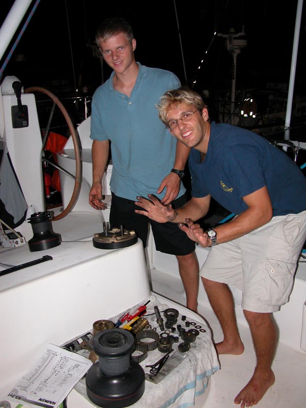 Family work: Sebastian, Florian's cousin, is shortly after his arrival in Salvador an expert in servicing Harken winches as well