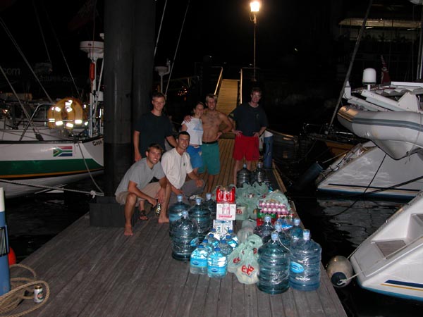 Before departing on a long voyage, the boat has to be stocked with food and water. Not an easy task when there are 6 people on board.