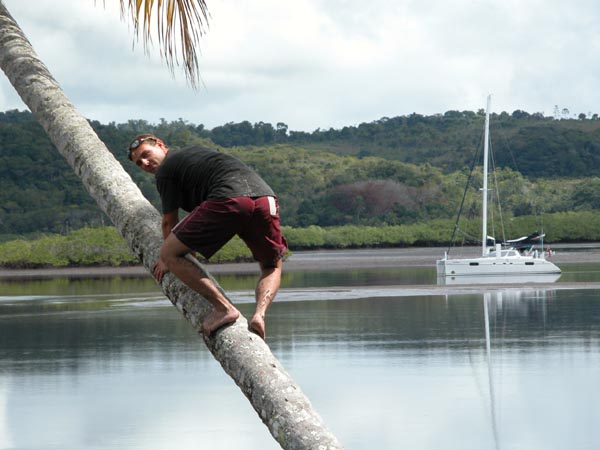 'Monkey' Christian climbing a palm tree.