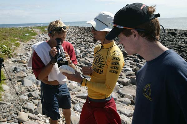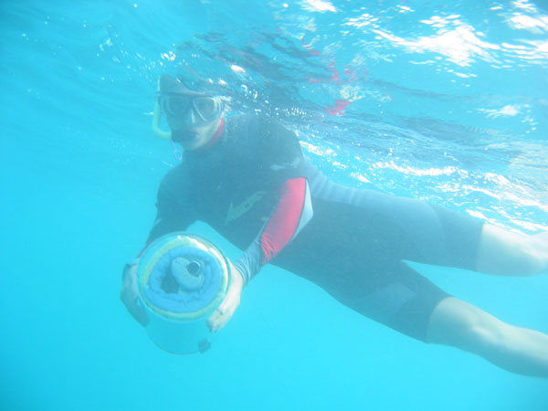 Sebastian tests our underwater camera housing which was designed by us to be able to carry our digital film camera.