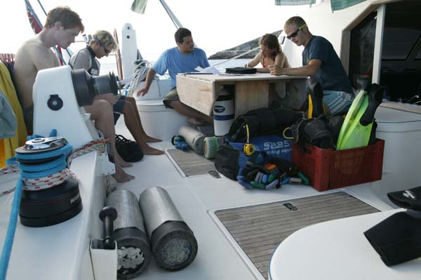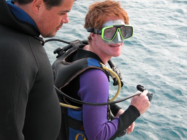We get ready for our first scuba diving session.
