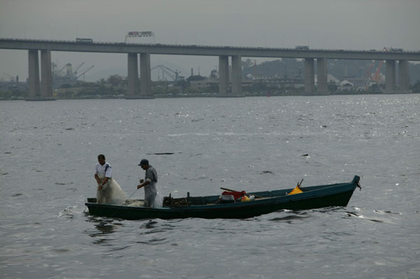 "Fishermen attending their profession in the Guanabara Bay. We wonder: ""Who do they sell their fish to?"""