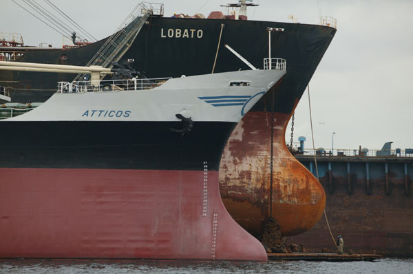 The commercial vessels in the docks we pass, make WILDLIFE look very tiny.