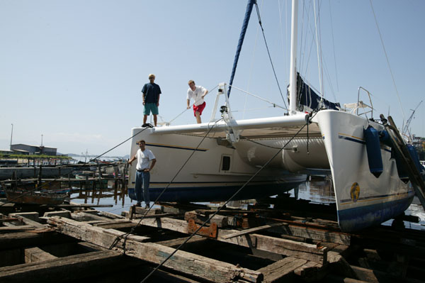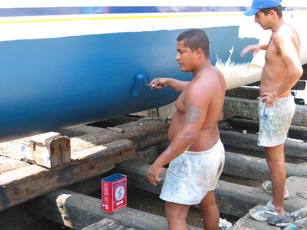 Niteroi: Reparing the boat in one of the world most polluted harbours.