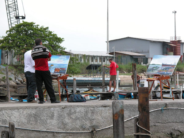 We were part of a wired surrounding when we saw artists on the weekend who started to capture the view of the dock in colorful paintings.