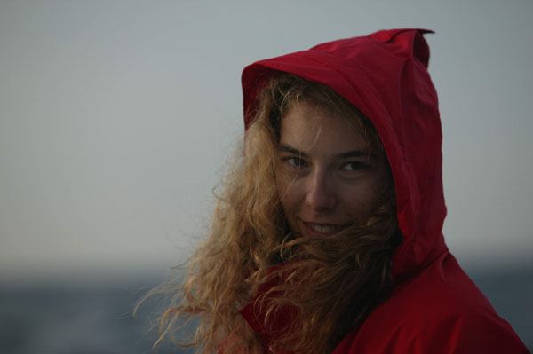 Kate is dressed up in her foul weather gear ready for any rough sea state.