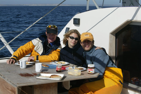 Bruno Nicoletti (who sailed around the world 2 times on a cat like ours) with his wife and his daughter.