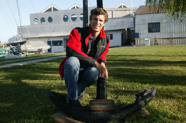 "JF next to the anchor of Ernest Shackleton (the English Explorer) thinking of the famous quote: ""With endurance you shall conquer!"""