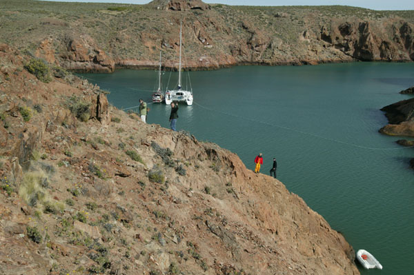 Caleta Hornos: Our first Patagonian tie up on the rocks with three 100 meter lines.