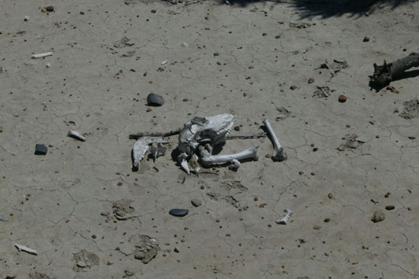 Dead skeletons of Guanacos coverd the fields of Caleta Sara.
