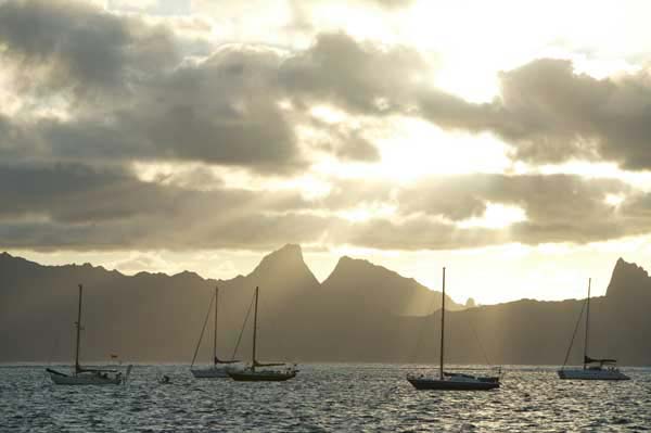 The sunset creates a wonderful atmosphere when she disappears behind the mountains of Mo'orea.