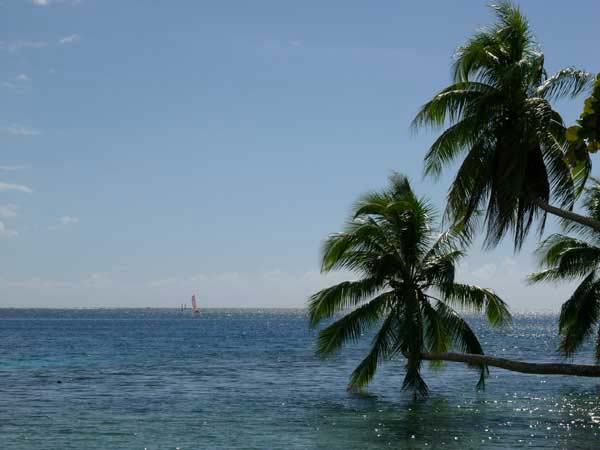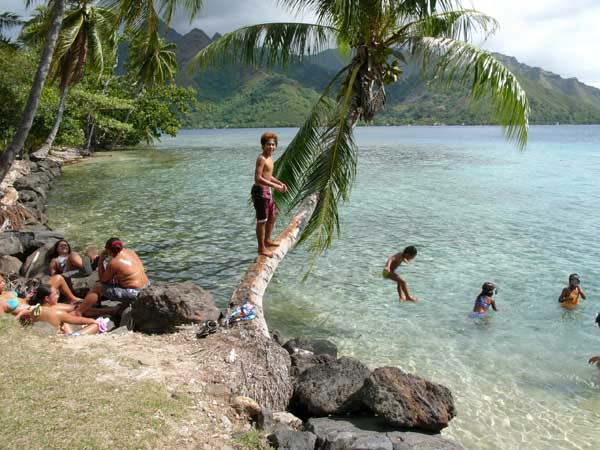 Opunohu - Captain Cook's Bay. Locals enjoy the beauty of the island.