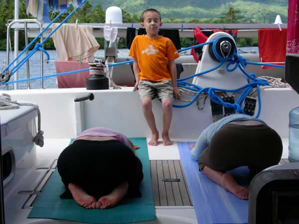 Daily yoga practice on WILDLIFE with their 4ft tall living Buda Luca making sure that the poses are correct.