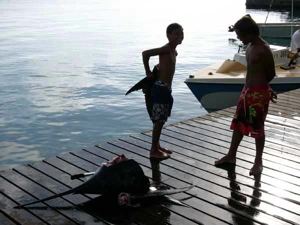 For the local kids it's just another fish they play with. For us it seems very sad that such beautiful creatures are caught and sold on the market.