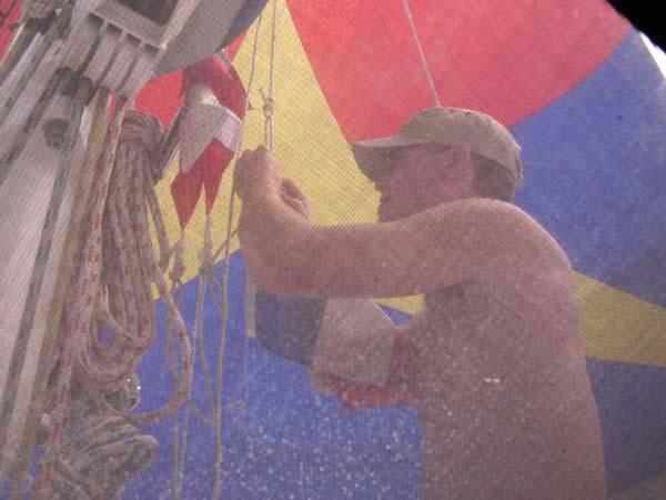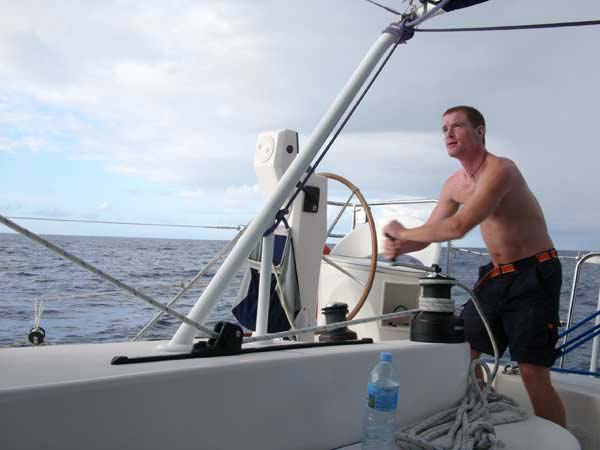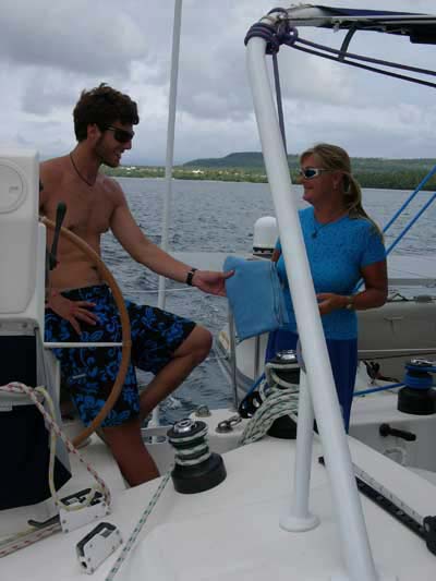 Daniel is changing the courtesy flag. The French and Polynesian goes down and the yellow quarantine flag goes up until we have cleared with customs and immigration.