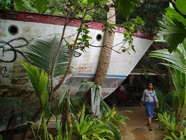 This boat was parked in the backyard of the Mermaid bar and converted into a house.
