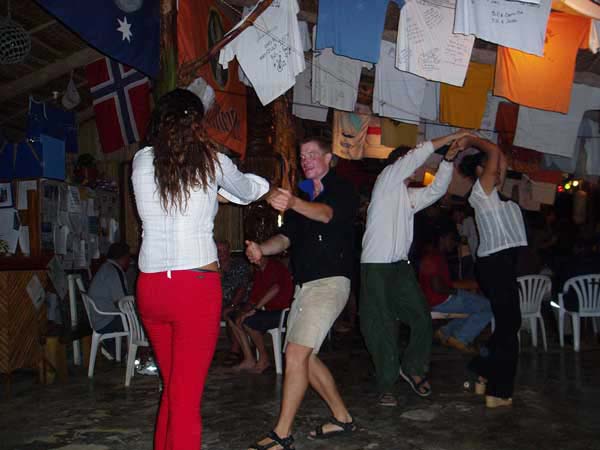 JF and Daniel introduce the local girls with success to some European dance moves.