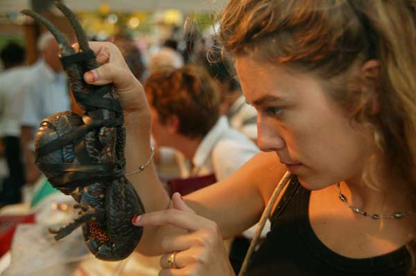Like in Tonga we find the endangered specie the 'Tortoli' Coconut Crab which was sold on the local market.