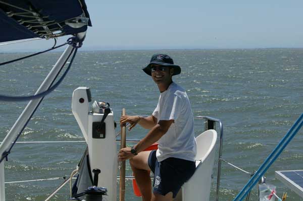 Precise steering was necessary to dodge the freighters in Moreton Bay due to the small dredged channel available.