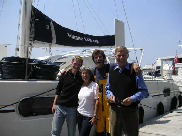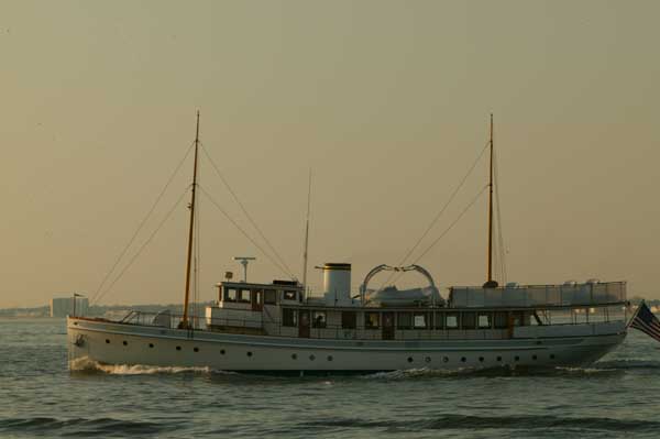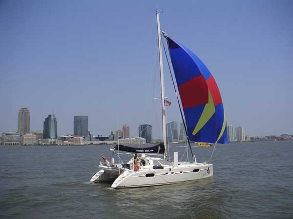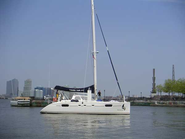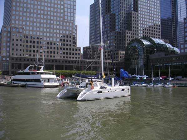 WILDLIFE on a lap of honor passing North Cove Marina while celebrating their arrival in New York City.