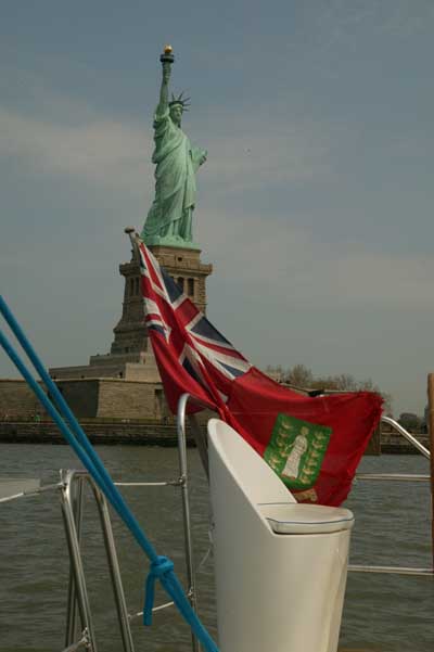 Liberty Island with the Statue in the background and its counterpart the Virgin Mary of the British Virgin Islands on our flag.